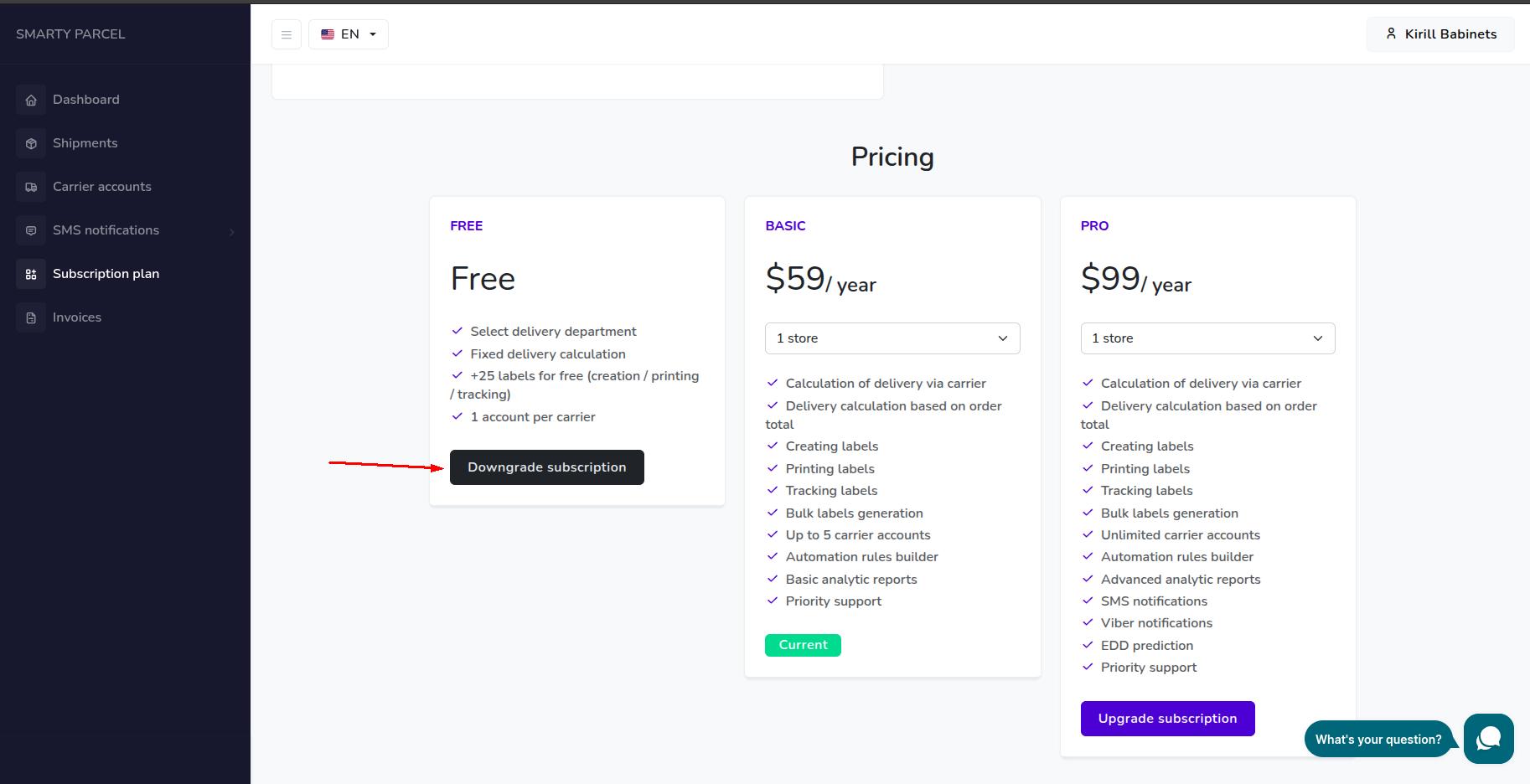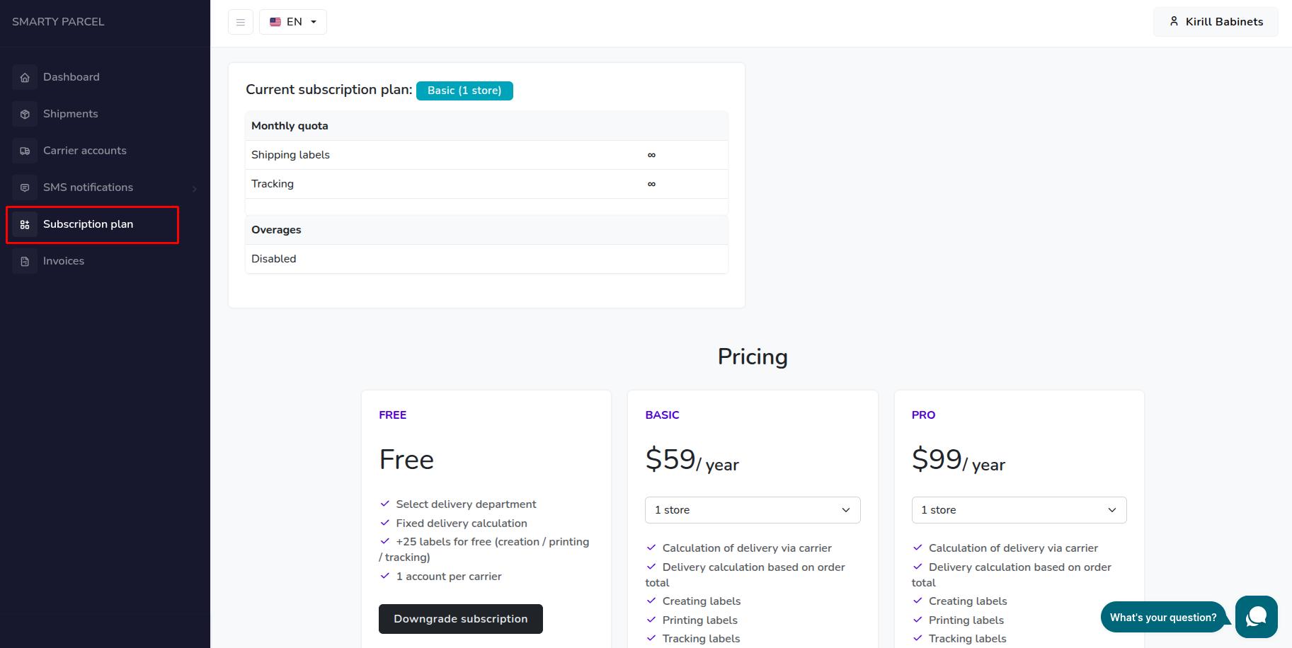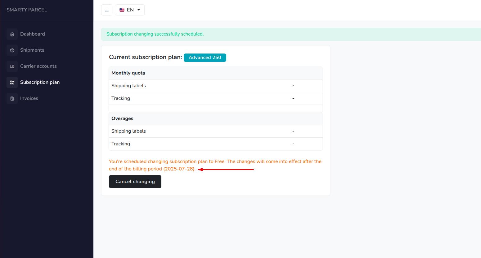Изменение тарифного плана SmartyParcel