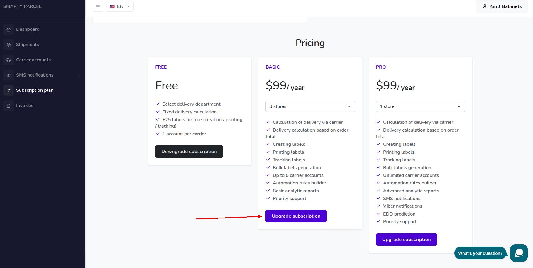 Если вы нуждаетесь в дополнительных функциях или если вы исчерпали лимиты ознакомительного плана по управлению вашими посылками, то вы можете в любое время улучшить свой тарифный план.