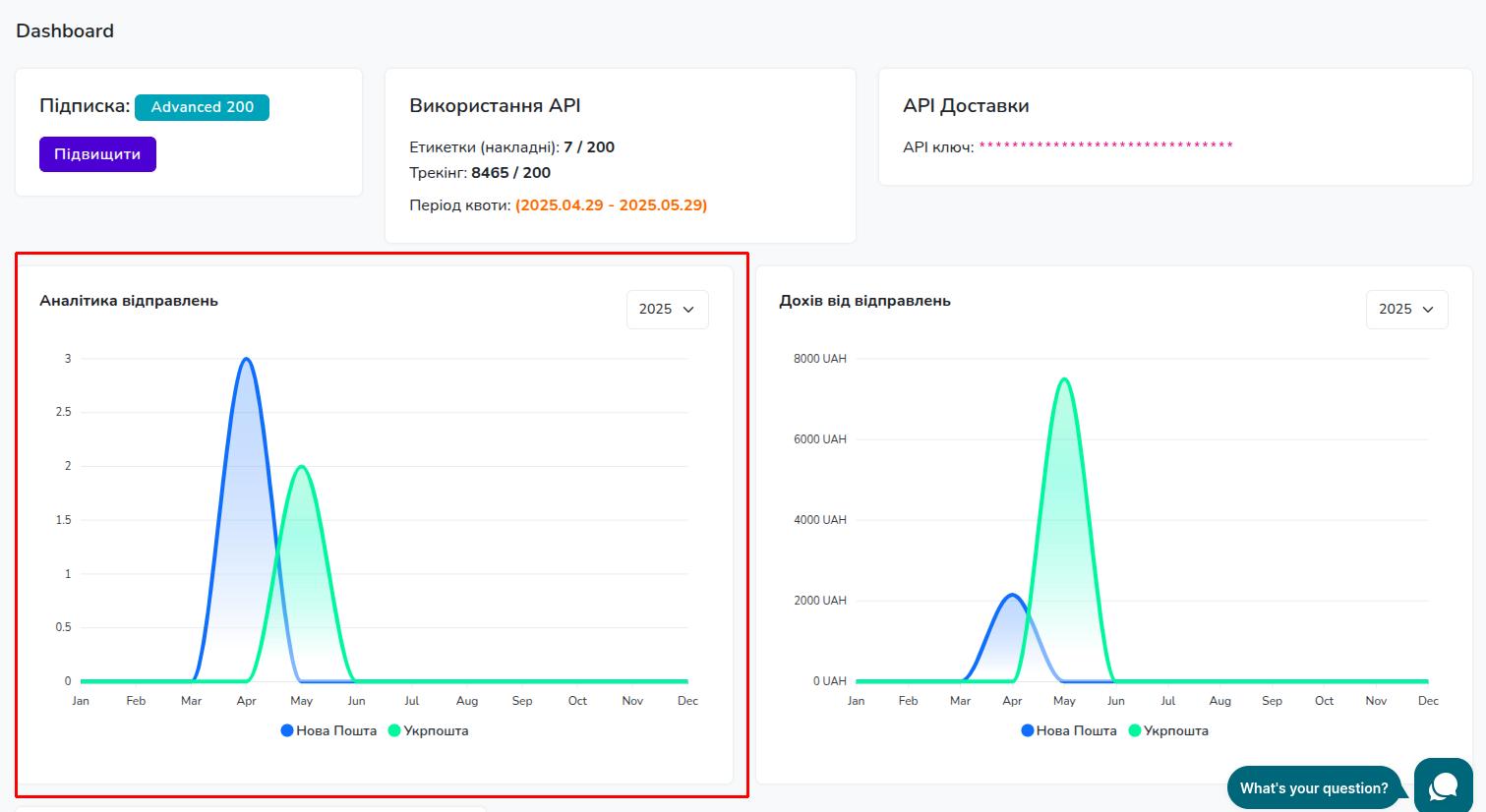 Добавили аналитические данные о количестве отправлений в разрезе месяца и курьера. Виджет находится на главной странице панели клиента.