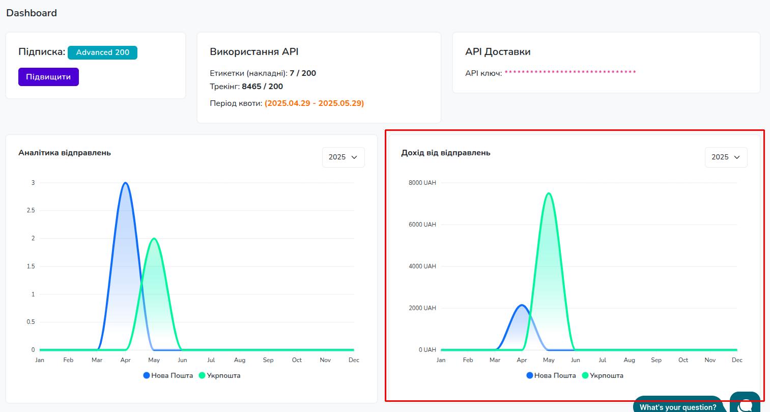 Также добавили аналитические данные о доходе от созданных отправлений в разрезе месяца и курьера. Данные формируются из объявленной стоимости отправлений.